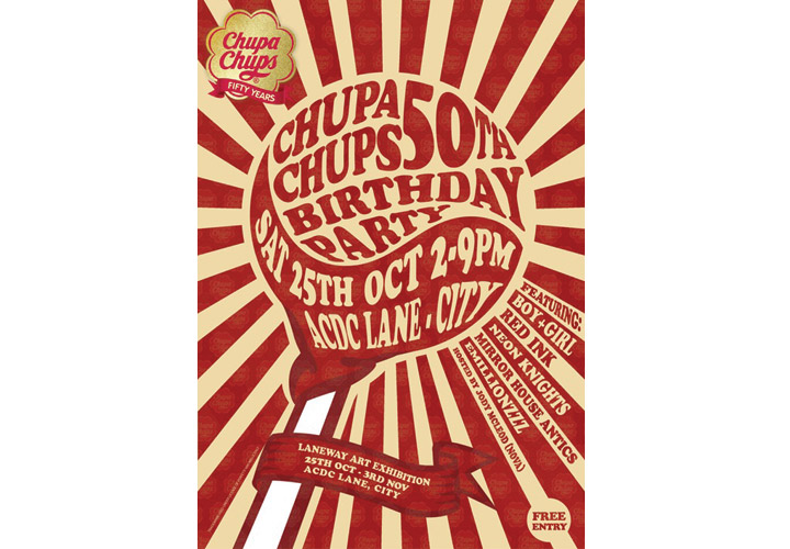 Chupa Chups required new branding to reflect 50 years of being in production. Rock posters, ghost billboards, Point of Sale pieces and a variety of promotional material were developed to reflect the history of Chupa Chups, while simultaneously appealing to a youthful audience.