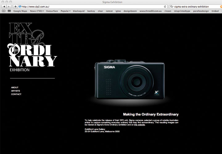 To help celebrate the release of their DP2 unit, Sigma cameras selected a group of notable Australian artists to capture something everyday ordinary that they find extraordinary. In order to publicise both the camera and the event a visual identity and website was required.